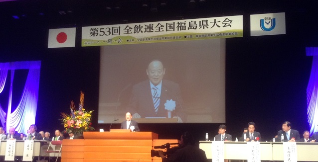 さる6月24日、全飲連(全国飲酒業生活衛生同業組合連合会)主催の「第53回全飲連全国福島県大会」が、福島市飯坂温泉「パルセ飯坂」において盛大に開催されました。