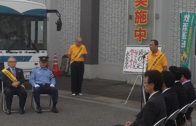 | 協会長崎県支部(山口支部長)と長崎県自動車運転代行業連絡協議会(山口会長)では、9月21日(月)~23日(水)の3日間、飲酒運転根絶を訴えました。初日は随伴車8台とパトカーで出陣式を行い、協会丹澤会長が挨拶されました。その後の3日間、各所轄のパトカー先導のもと、トータル70台の随伴車がキャラバン、各地の商店街において交通安全と飲酒運転根絶のチラシなどを配布しました。この運動は一昨年から実施され、飲酒運転根絶、高齢者の事故防止、交通ルールの順守、運転マナー向上を県民にPRすることで県内の交通安全向上に寄与しています。 |
