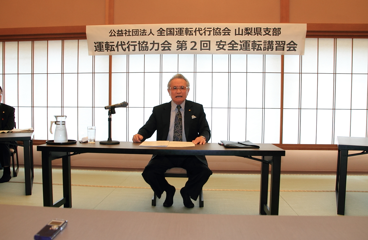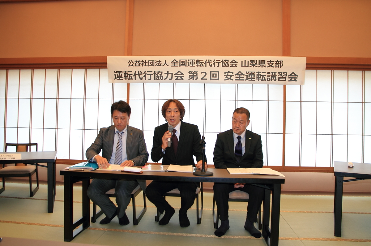6月5日(日)甲府市「魚保」において、山梨県運転代行協力会(田中会長)と協会山梨県支部(田中支部長)共催のもと第2回安全運転講習会が開催されました。講習会は田中会長の挨拶・趣旨説明にはじまり、協力会顧問の臼井山梨県議会議員につづいて県警交通企画課小川様から県下の交通事故状況と飲酒運転根絶活動について、県庁リニア交通局交通政策課石原様から本年3月国土交通省発出の「利用者保護」に関する諸対策の内容について講話をいただきました。