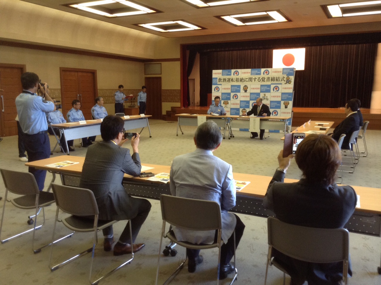 覚書締結式は、沖縄県警察本部交通部参事官、交通部調査監及び協会丹澤会長、霜鳥理事、辻理事立会いのもと行われました。