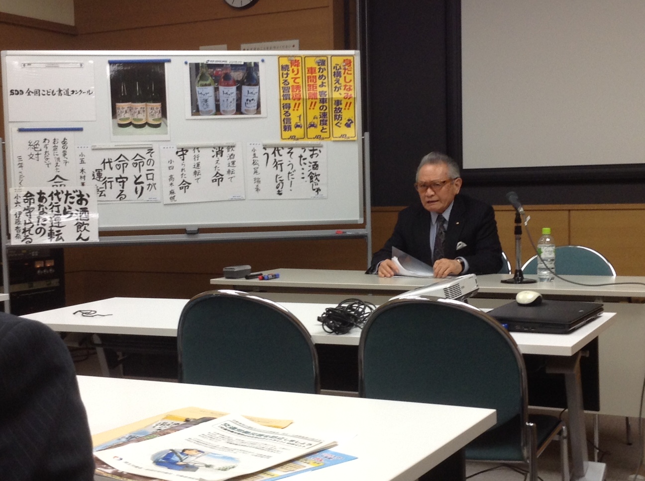 休憩に引き続き、長崎県自動車運転代行業連絡協議会 山口 英治会長から「長崎県における活動事例」と題して、毎年行なわれている飲酒運転根絶キャンペーンを、県警・大村署と代行業者が合同で行った、「長崎県周遊キャラバン隊」の活動内容をDVDにて発表されました。