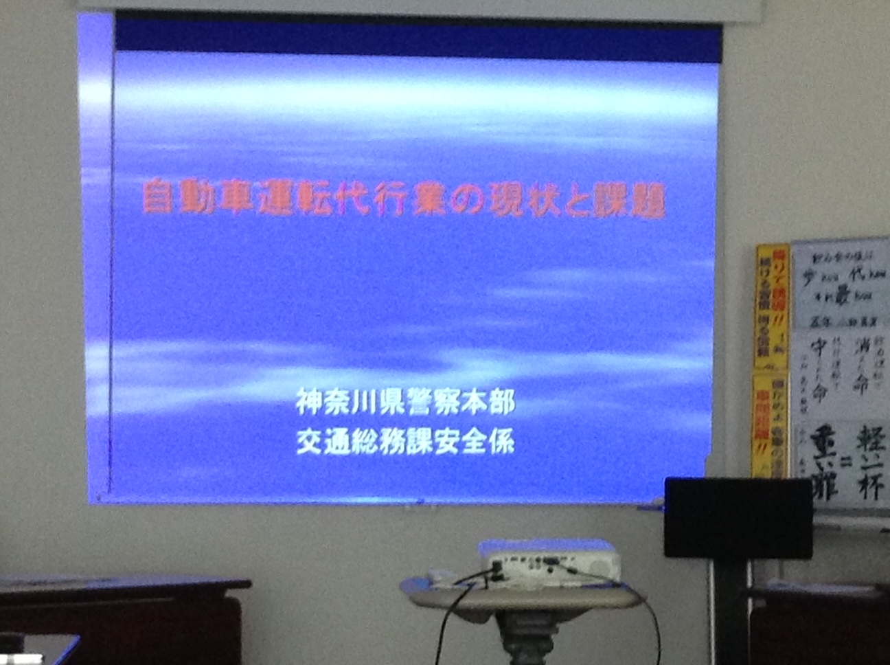 5月8日(月)、横浜情報文化センターにおいて協会神奈川県支部(霜鳥支部長)が、運転代行業の適正化に向けた講習会を行いました。