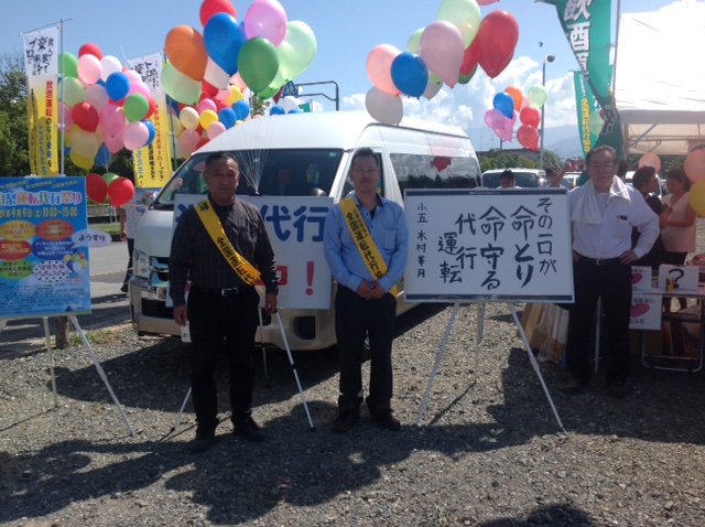 9月9日(土)甲府中央卸売市場内において、協会山梨県支部(田中支部長)が昨年全国飲酒運転ワースト2位にランキングされた山梨県の現状に奮起し、飲酒運転の根絶を訴える企画から、全国で初めての運転代行事業者が主催する「第一回山梨運転代行祭り」が地元行政及び企業等の後援及び協賛を働きかけ実現