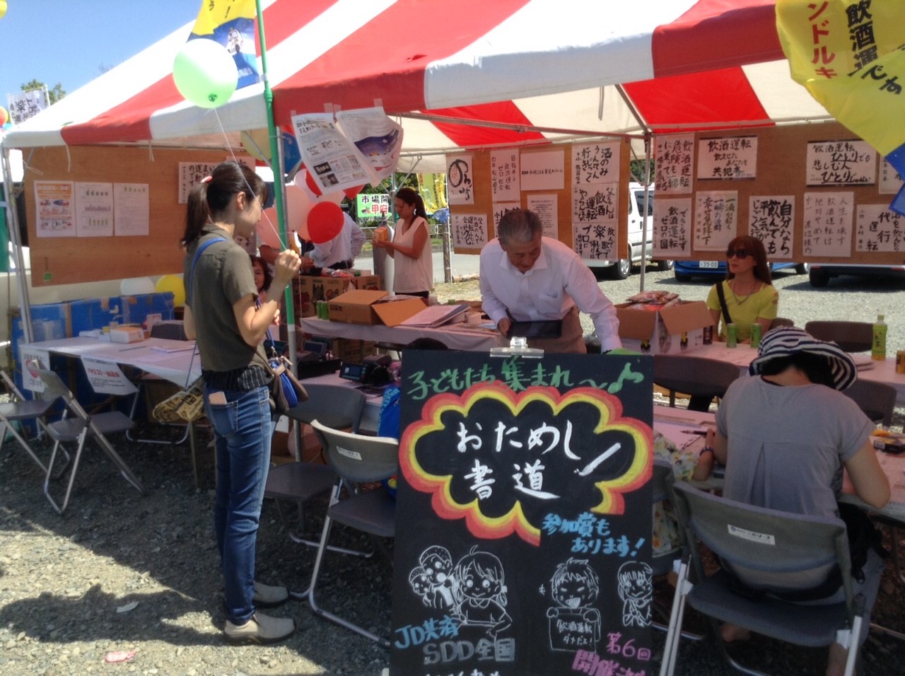 また、飲酒運転根絶の取り組みとして、「JD共済プレゼンツ全国こども書道コンクール」作品の展示及び親子で参加する「お試し書道」を実施しました。こどもが何を書いたらいいか悩んでいると、お父さんやお母さんがヒントを出したり、お手本を書いたりと飲酒運転根絶に対する裾野拡大の手応えがあったと実感しました。