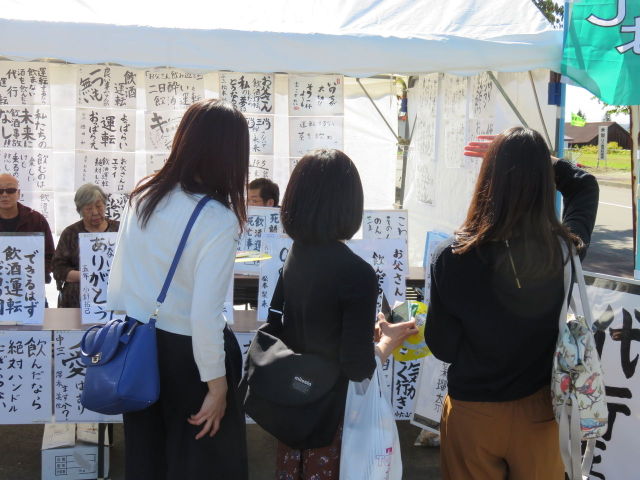 今回も北海道庁から依頼された、飲酒運転根絶に関する来場者の意識調査を実施し、数多くの来場者の方々から回答をいただき、ポケットティシュ等の啓発グッズを配布しながら、来場者一人一人に「飲酒運転は止めよう!」「運転代行を利用して!」と声掛けもしました。