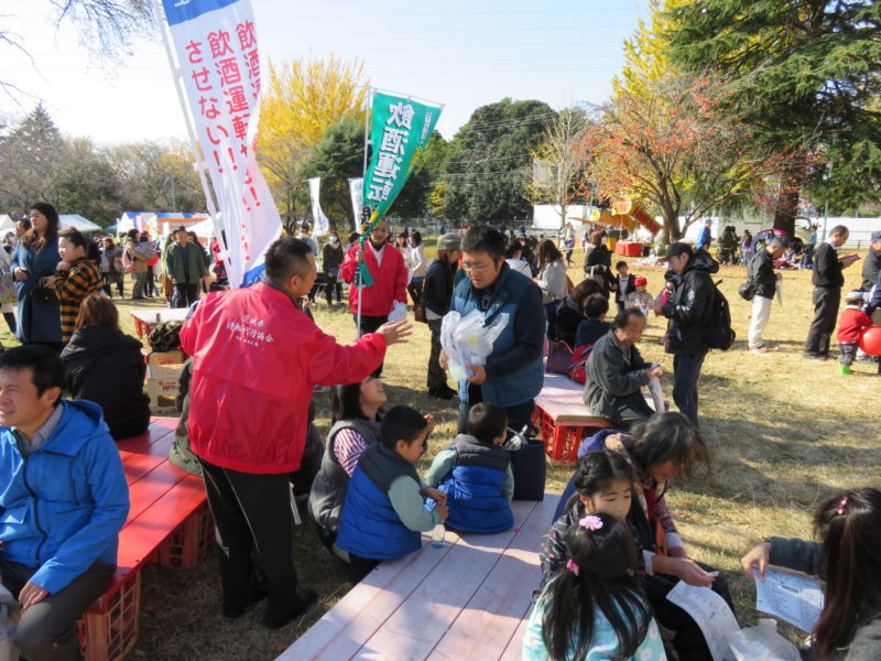 毎年このお祭りには参加させて頂いており、会場の皆様から「キャンペーン活動頑張って!」という温かいお言葉を多数頂戴できました。飲酒運転根絶非公認キャラ「中山くん」にも小さいお子様たちが集まり、保護者の方々と飲酒運転根絶の訴えに耳を傾けてくださいました。