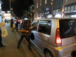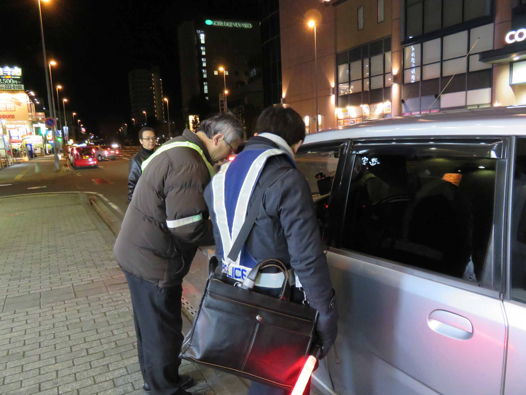 中にはパトロールの様子を見つけると、そそくさと逃げ出す代行業者も見受けられました。包み隠さず街頭指導パトロールを受ける業者もあり、運転代行業に対して自信をもち適正な営業活動を行っている業者も多数ありました。