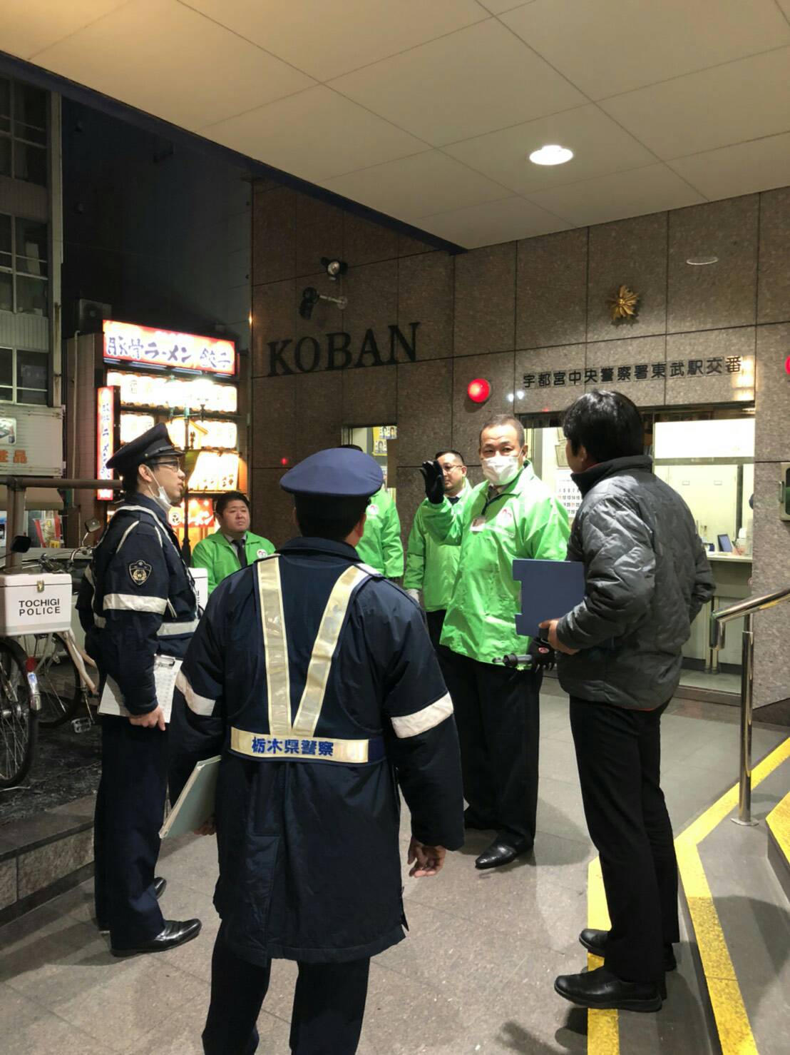 3月23日(金)、栃木県支部(板橋支部長)は健全化推進員、栃木県庁・栃木県警察本部職員とともに、栃木県宇都宮市宮園町宇都宮中央警察署東武駅交番前に集合、今期3回目の街頭指導パトロールを行いました。