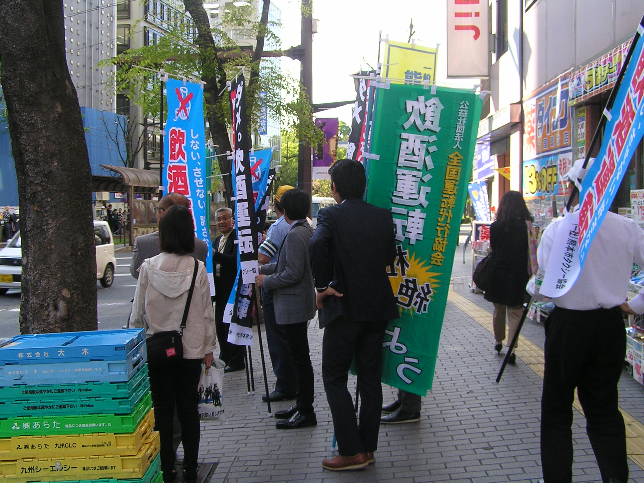 今回は、協会のほか熊本中央警察署職員、繁華街運転代行協会会員、タクシー協会会員が、通行人にポケットテッシュなどの持ち寄ったグッズを手渡し、飲酒運転根絶を訴えました。
