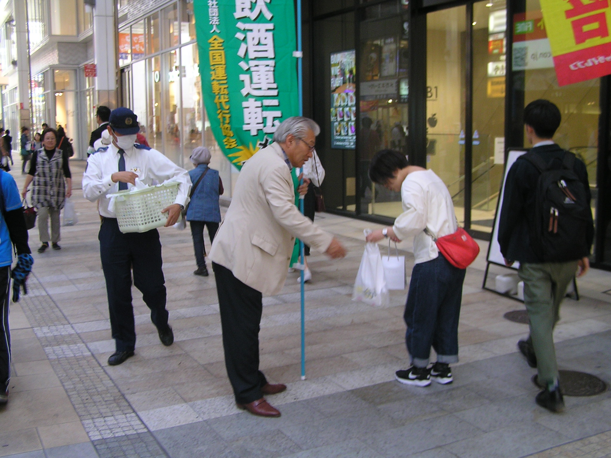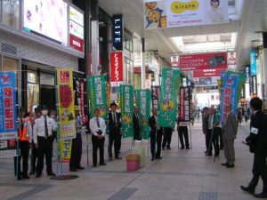 4月13日(金)協会熊本県支部(小森田支部長)は、熊本市下通COCOSA前で飲酒運転根絶キャンペーンを実施しました。