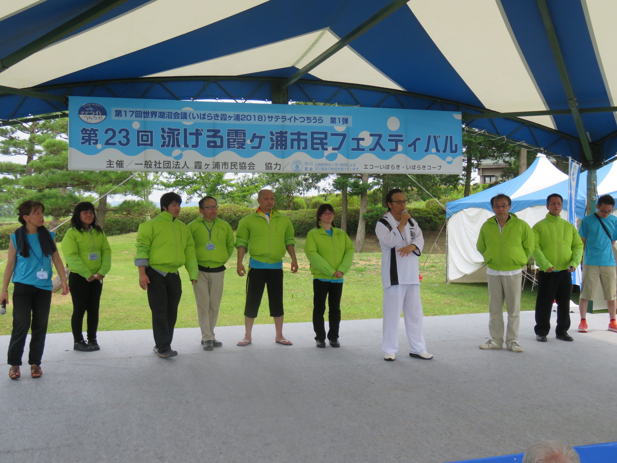 平成30年7月16日(月)海の日 土浦市霞ヶ浦総合公園内 国民宿舎「水郷」跡地にて第23回泳げる霞ヶ浦市民フェスティバルが行われました。
