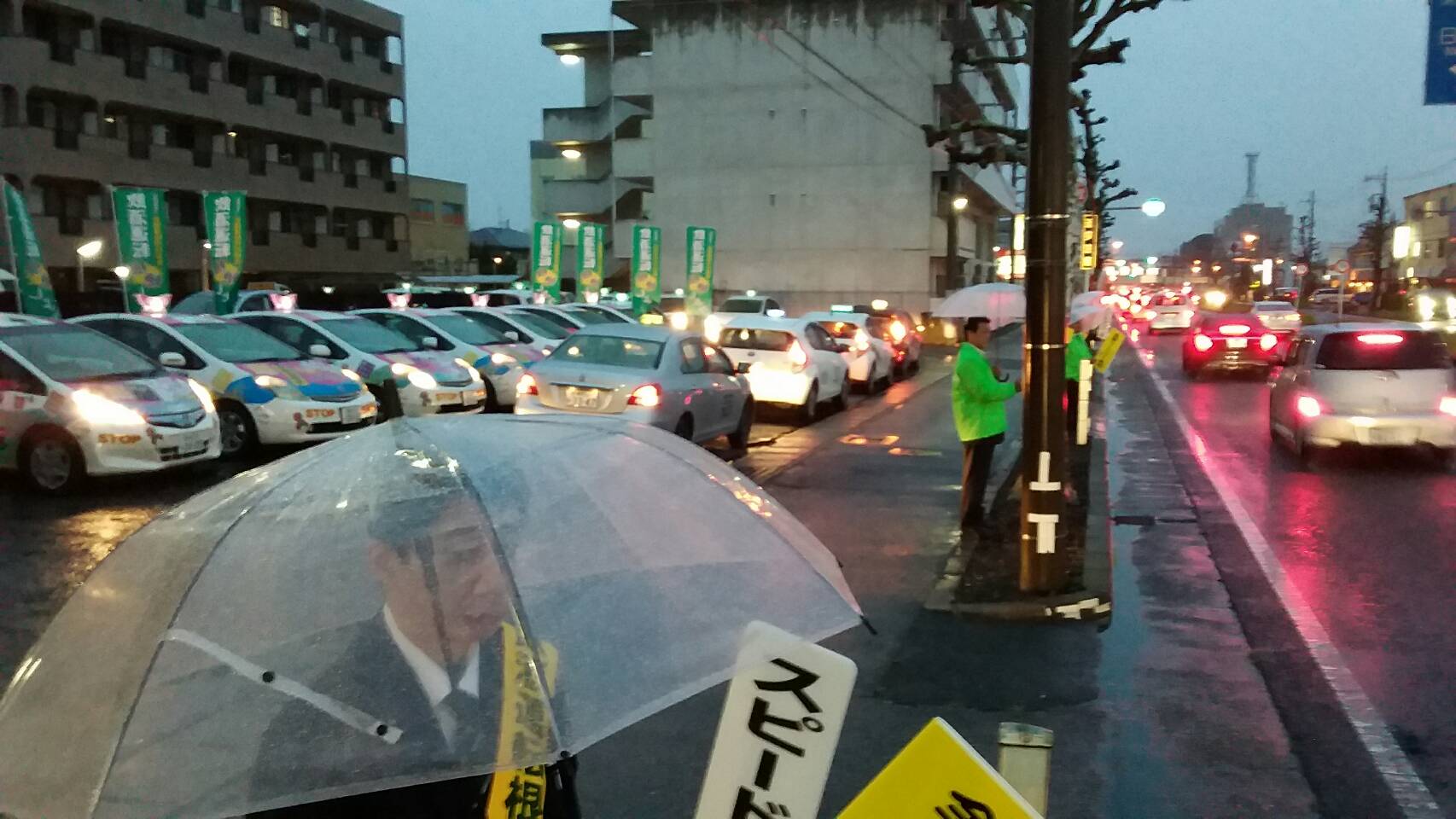 協会栃木県支部は、栃木県自動車運転代行サービス業協同組合と連携し「秋の全国交通安全運動」初日を9月21日(金)小雨が降る中PM4:30~PM6:00宇都宮市鶴田町(東武代行)において隣接幹線道路沿いで当協会のぼり旗を揚げ、会員はタスキをかけ、交通安全運動の活動を行いました。また、スピードを出しやすい幹線道路のため「栃木県交通安全対策協議会」から提供を受けた、全国及び栃木県が訴える重点テーマが記載されたチラシと当協会のポケットティッシュ等を配布しました。走行中のドライバーには、宇都宮中央警察署から貸出を受けた「スピードダウン・全席シートベルト」のハンドボードをかざし注意を呼掛け、安全運転の再確認を伝えました。