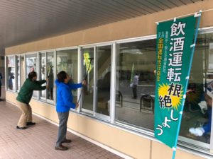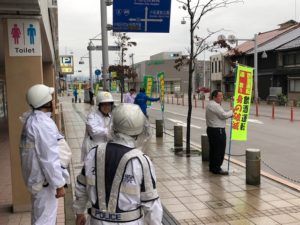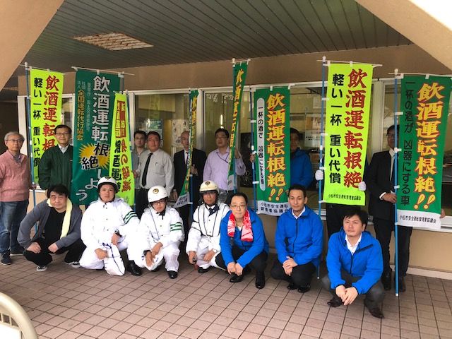 10月11日(水)小松市土居原町において、石川県支部(中川支部長)と県運転代行協会が小松警察署員とともに飲酒運転防止をのぼり旗で啓発
