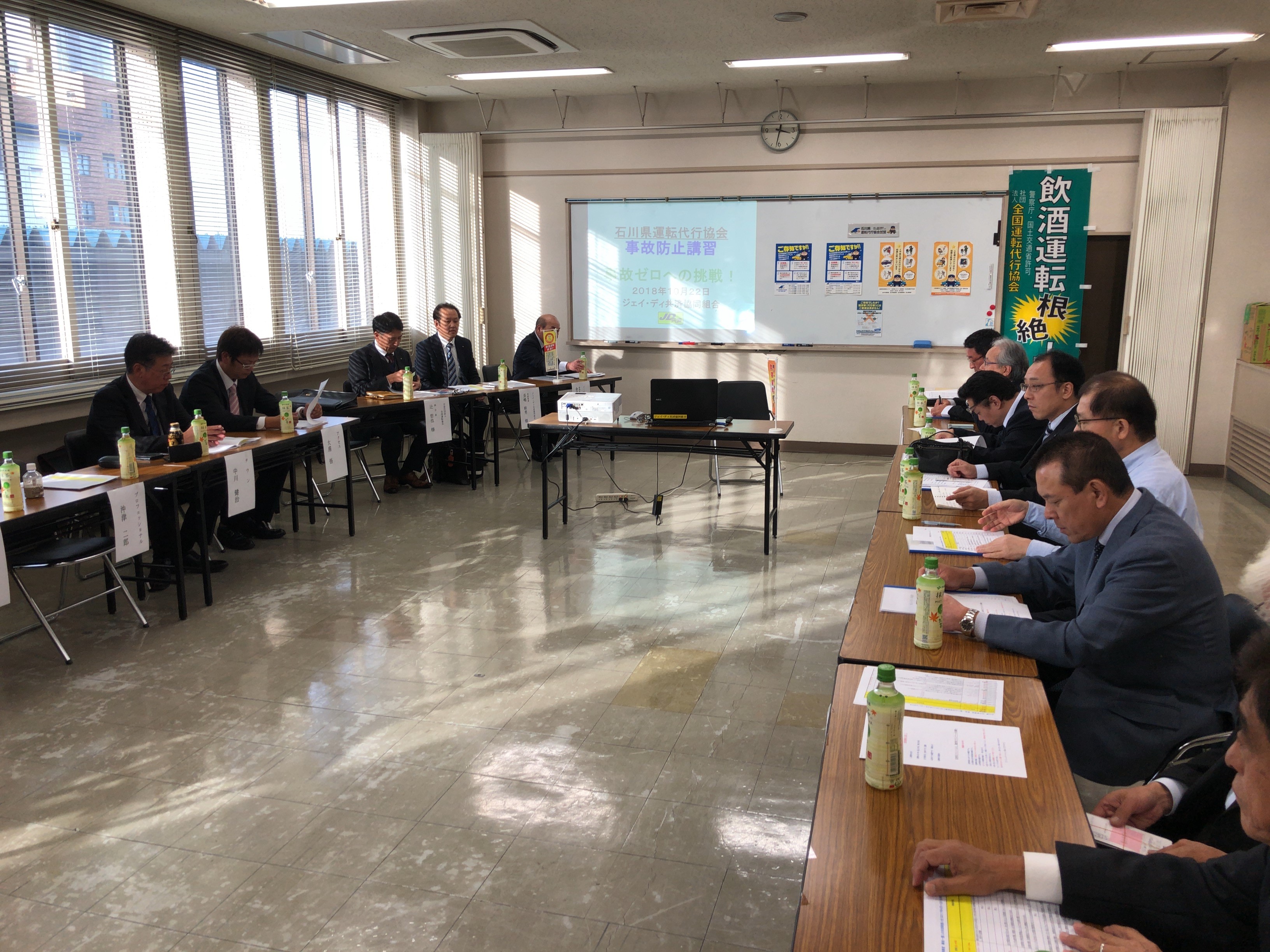 辻副会長は依頼された議題「全国の代行情勢」「これからの運転代行問題」「公益社団法人の強み」等を講演するなか、参加事業者は全国の出来事から、自分たちがすべきことに耳を傾け、終了後の質疑も熱を帯びていました。それに引き続きジェイ・ディ共済協同組合による、運転代行の心構えや事故予防についても講演が行われました。
