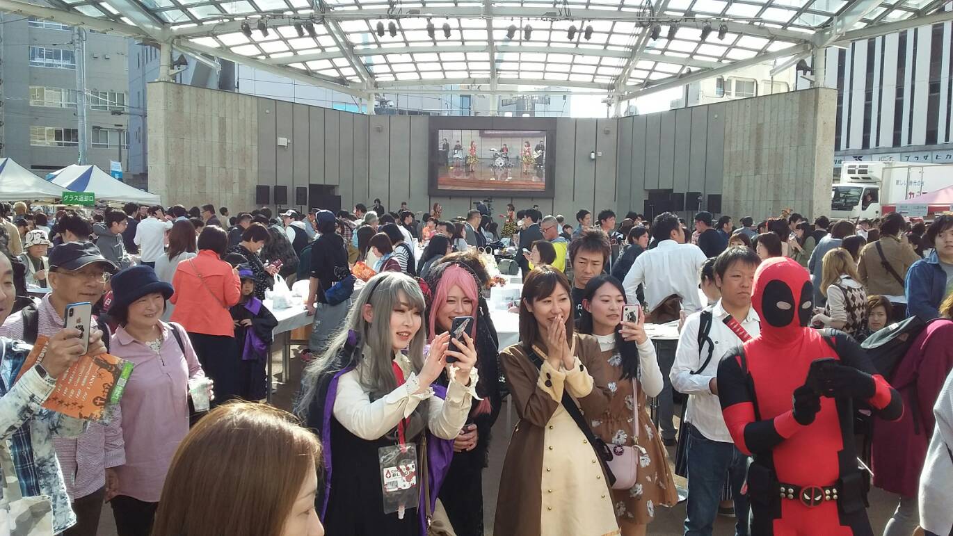 前回の代行利用者の多かったことから、今回も許可をいただきPM4:00からステージ南側路上で代行車を待機させ、車で来られた来場者が夜まで待たずに運転代行を利用できる様にさせて頂きました。その案内を、ステージ上にて協会栃木県支部(板橋勇二支部長)が、運転代行の利用法・適正な業者の見分け方等の説明、又、当協会も後援している「SDD全国こども書道コンクール」に第7回から(宇都宮市・宇都宮市教育委員会)も後援してくださった事を説明し、最後に協会加盟業者の代行車両が待機していることを伝えました。