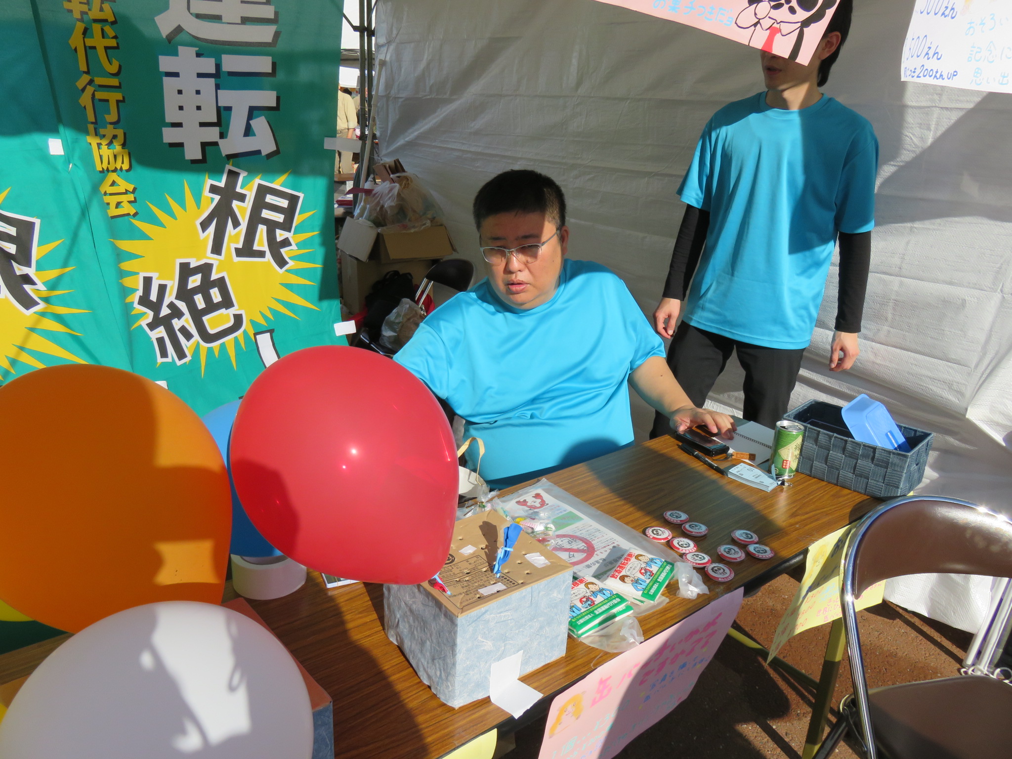 お客様には、オリジナル手作り缶バッジのほかに、飲酒運転根絶非公認ゆるキャラ「中山くん」の缶バッジと飲酒運転根絶啓発グッズを添えてお渡し致しました。