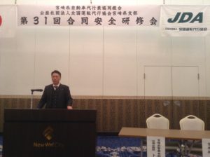 2月11日(祝)市内「ニューウェルシティー宮崎」で、協会宮崎県支部(黒木支部長)が宮崎県自動車運転代行事業協同組合とともに「合同安全研修会」を行いました。