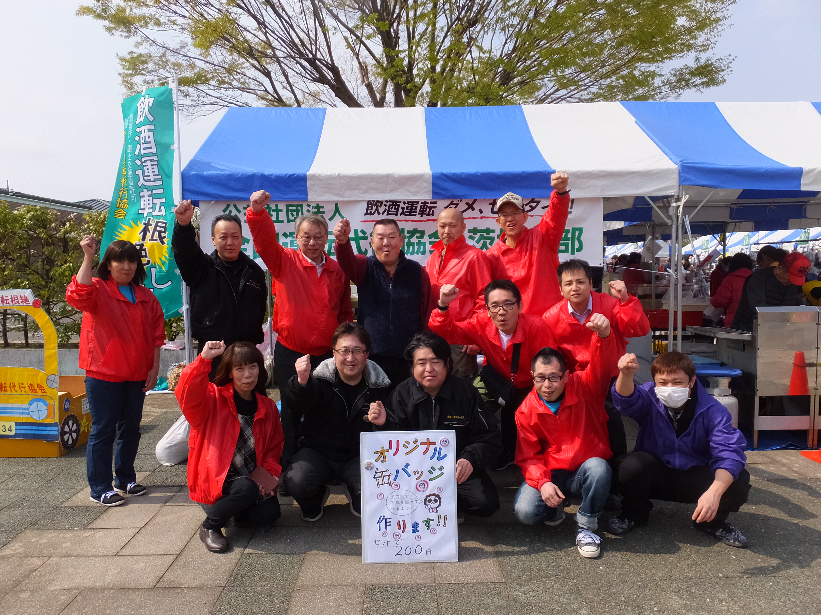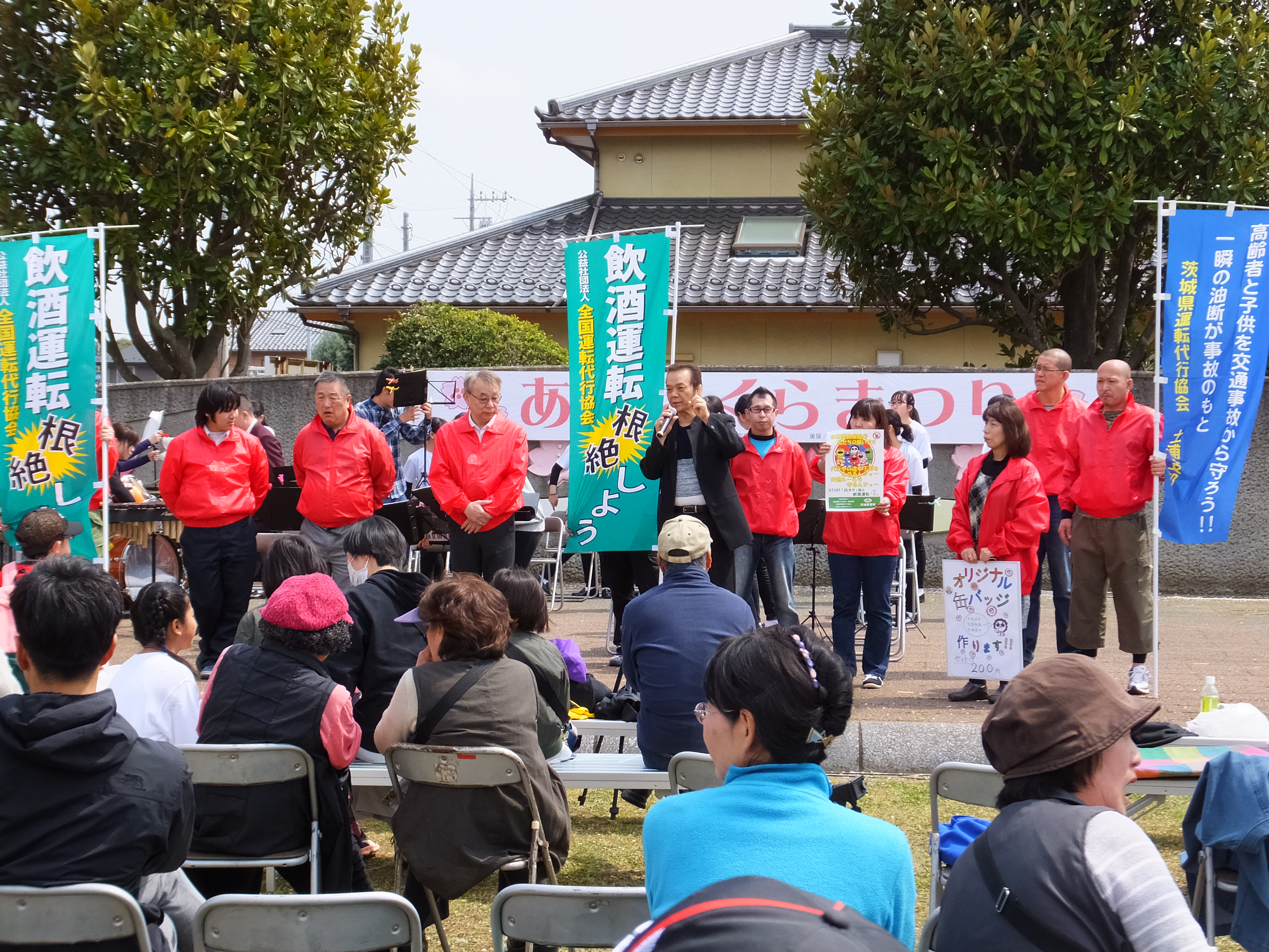 4月7日(日)茨城県阿見町総合保健福祉会館脇「ふれあいの道」にて、(公社)全国運転代行協会茨城県支部、並びに茨城県運転代行協会県南支部のメンバーが「あみまちさくらまつり」の出店ブースと、ステージ上で飲酒運転根絶を訴えました。