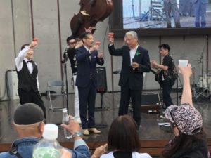 会場に訪れた福田富一栃木県知事からも「お酒をふるまうイベントには本当にかかせない代行業者の皆様です。大変な業務の中ご苦労様です。」「これからも県民の為にもがんばって下さい。」と激励の言葉をいただきました。又、ステージ上では、宇都宮カクテル倶楽部代表上杉晴教様(BAR FAKEオーナー)と乾杯をした後、福田富一県知事から来場者に対し「こんなに美味しいカクテルを飲んだ後は、代行車を利用しましょう!」と、運転代行のアピールも頂きました。
