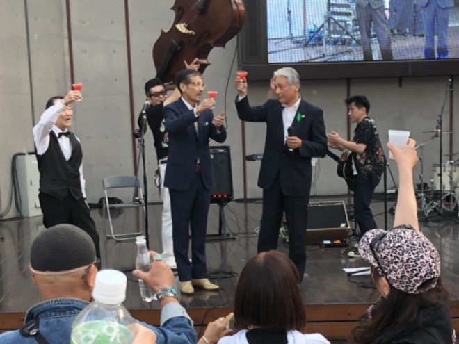 前回も代行利用者が多かったことから、今回も許可をいただき午後4時からステージ南側路上で代行車を待機させ、車で来られた来場者が夜まで待たずに運転代行を利用できる様にさせて頂きました。その案内を、ステージ上にて司会のBAR山野井オーナー 山野井様がアナウンスして下さいました。