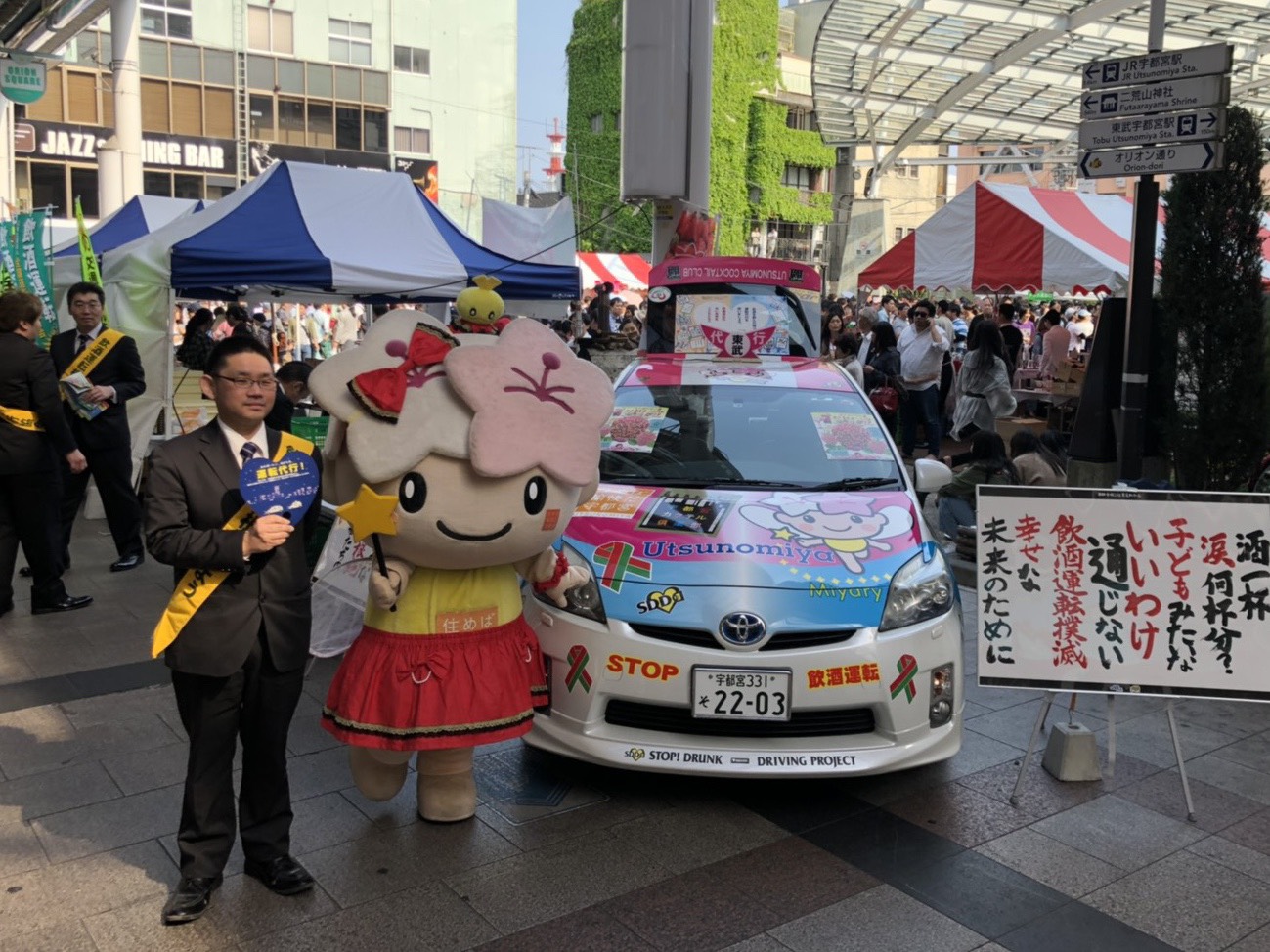 5月12日(日)栃木県支部は、栃木県自動車運転代行サービス業協同組合と連携し宇都宮市が推進する町おこしイベントである「ストロベリー・カクテルカーニバル2019」に参加し、会場となった市内オリオンスクエア及び近隣道路の商店街が立ち並ぶ「オリオン通り」において「飲酒運転根絶」と、春の全国交通安全運動期間中の開催と言うこともあり「交通マナーを守り安全運転」をアピールしながら街頭活動を実施しました。会場内は、イチゴ好きな方々やカクテル好きな方々で盛り上がり大盛況でした。