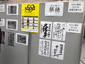 FM AIR’Gでは、飲酒運転根絶活動も行っており、会場にはSDDのポスターと全国こども書道コンクール作品が掲示されていました。