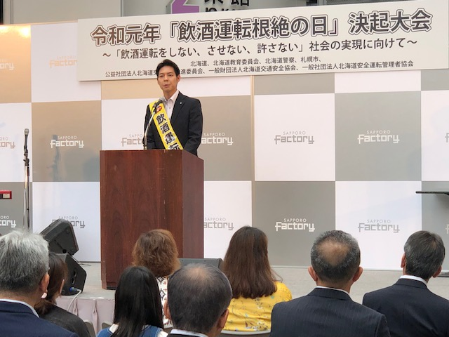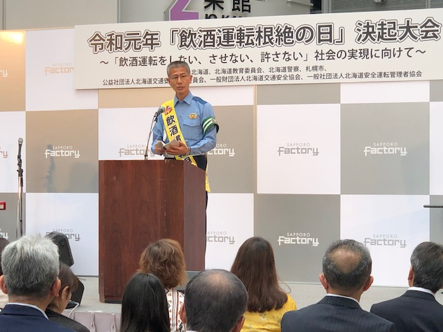 7月13日(土)北海道支部(山田支部長)はサッポロファクトリー・アトリウムにて開催された北海道飲酒運転根絶の日決起大会に出席しました。