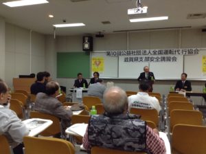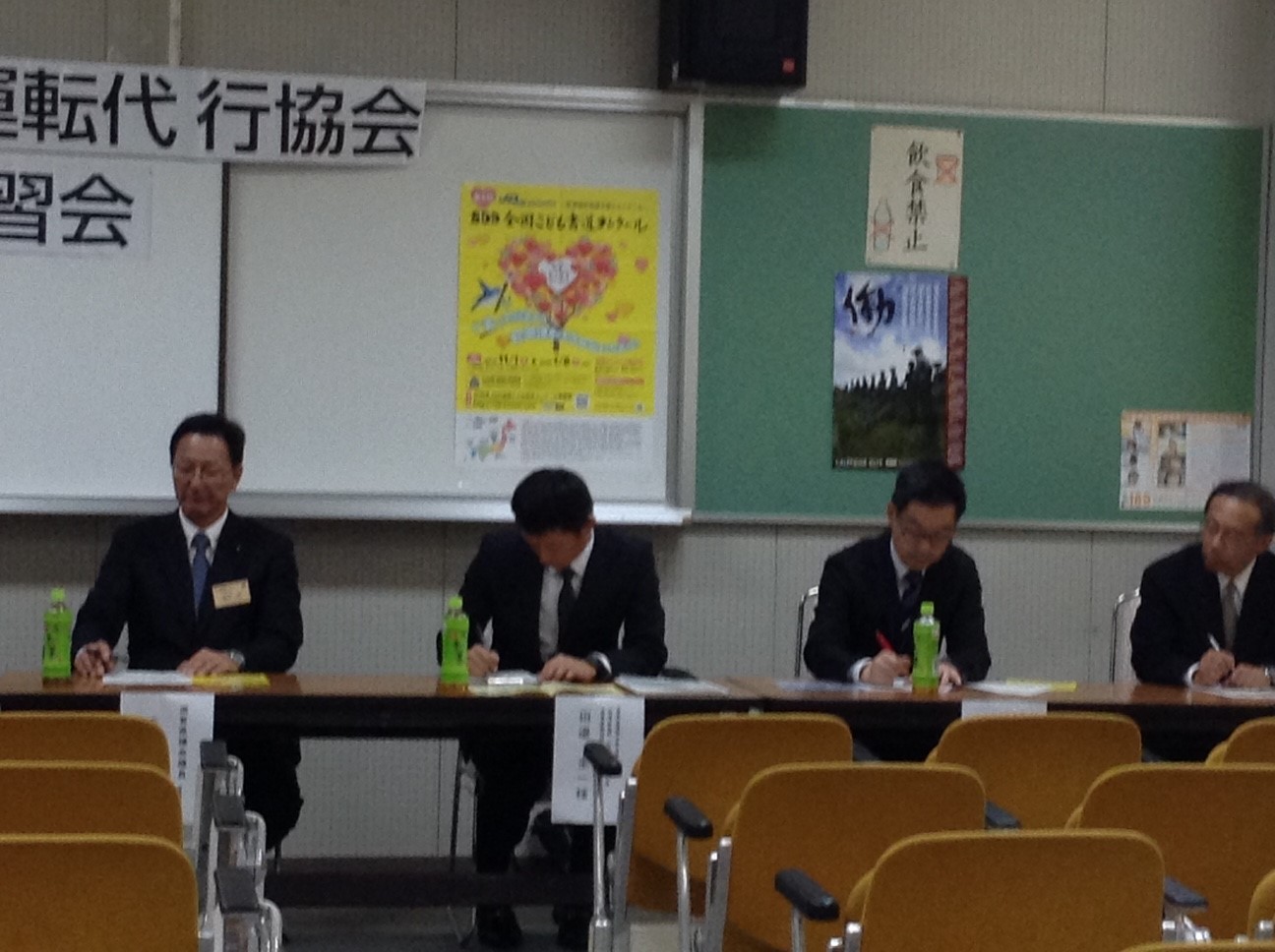 例年、県内全業者(今回は76社)に滋賀県支部から開催案内を送付するほか、県内の運転代行業者の現状を心配し、滋賀県及び滋賀県警察本部からも講習会参加への文書を発送されたにもかかわらず、講習会の参加は16名と、業者の意識が低いことに参加者は驚きを隠せなかった。