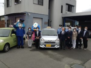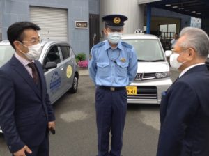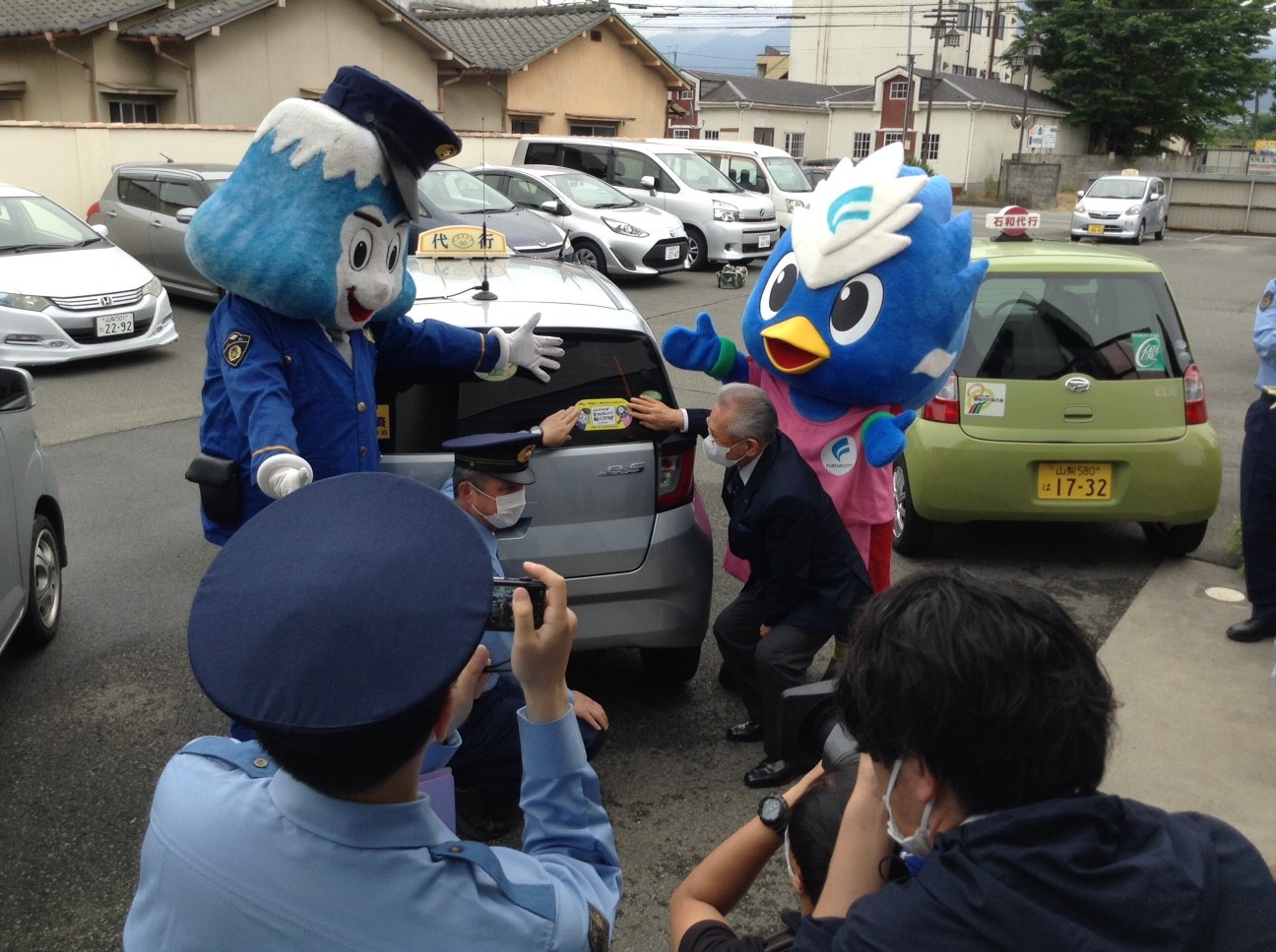 6月1日(月)山梨県支部(田中支部長)が、笛吹署から予て要望されていた「山梨県笛吹署飲酒運転根絶ステッカー」を、㈱クレスト(加々美理事)駐車場において、丹澤会長、笛吹署員、市役所職員、地域代行事業者及び関心を示したテレビ局、読売新聞、山日新聞社各メディアが参加し披露会した。