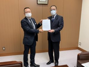 (公社)全国運転代行協会栃木県支部(支部長 板橋勇二)は、緊急事態宣言が発令された栃木県庁と、市独自の緊急事態宣言を発令した宇都宮市役所を訪れ、「運転代行業への事業継続支援要望書」を提出いたしました。