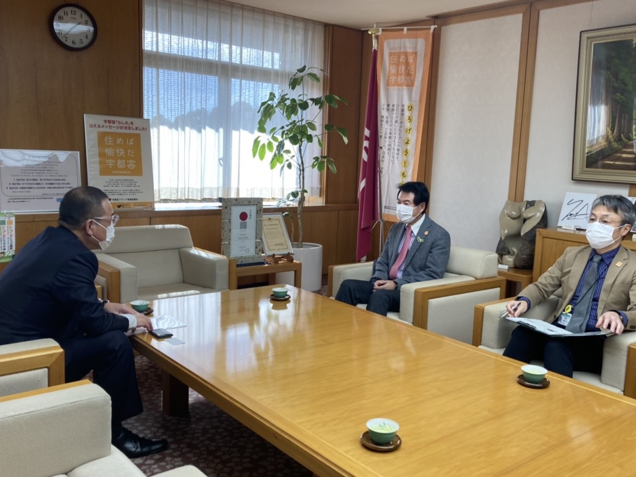 また、同支部長は1月27日には宇都宮市役所を訪問、1月13日に提出致しました県支部要望書内容について佐藤栄一市長と対談し、自動車運転代行業者に対する事業継続を目的とした「緊急支援金の給付」をお願い致しました。