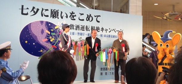 今回は「七夕に願いをこめて」と題し、駅利用者が短冊に飲酒運転根絶への願いをしたため、キャンペーン隊長に託しました。