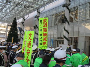年末は夕暮れ時から夜間にかけて交通事故が多発する傾向にあります。また、忘年会など飲酒する機会が増えることから飲酒運転が原因となる事故も増えます。飲酒運転は単なる交通違反ではなく、悪質な犯罪です。「飲酒運転を絶対にしない、させない」という強い意思を持ち、飲酒運転を根絶しなければなりません。茨城県支部は、今後も県民の皆様、行政、警察、交通関係者方々と共に、交通安全に寄与する活動を行って参ります。