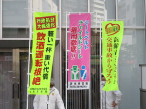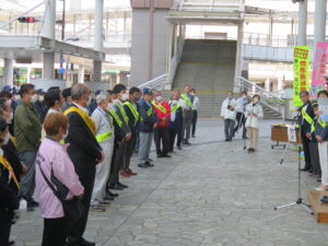また、今回はコロナ禍自粛解除後の大きな交通安全街頭キャンペーンとなり、土浦市役所、土浦駅周辺を参加者が啓発グッツを手に、歩行者、自転車・自動車運転手に対して交通安全を呼びかけました。