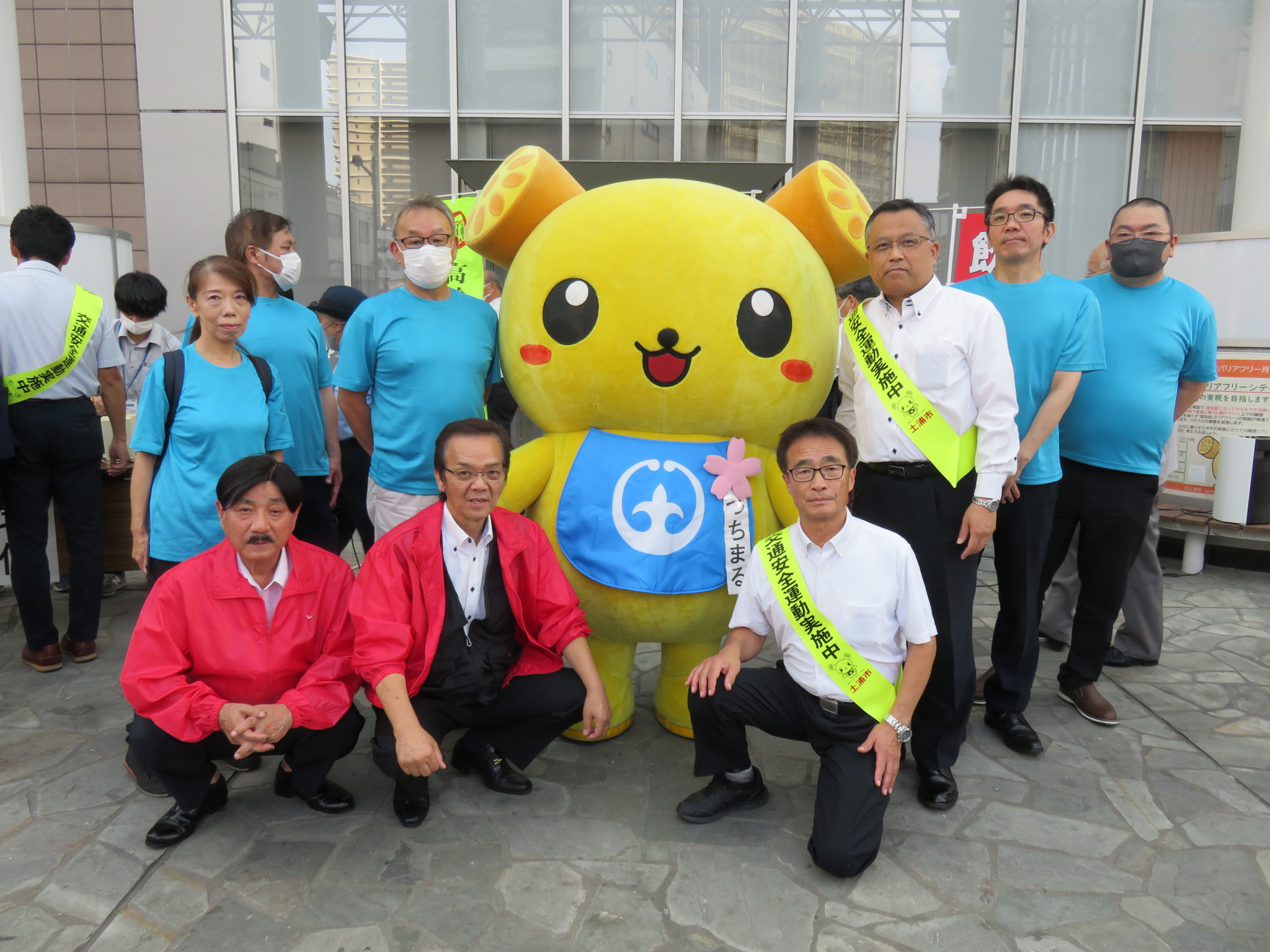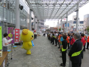 各参加者は、土浦市役所、土浦駅周辺の歩行者、車の運転手・自転車利用の方々に、交通安全を呼びかけながら啓発グッツを配布致しました。