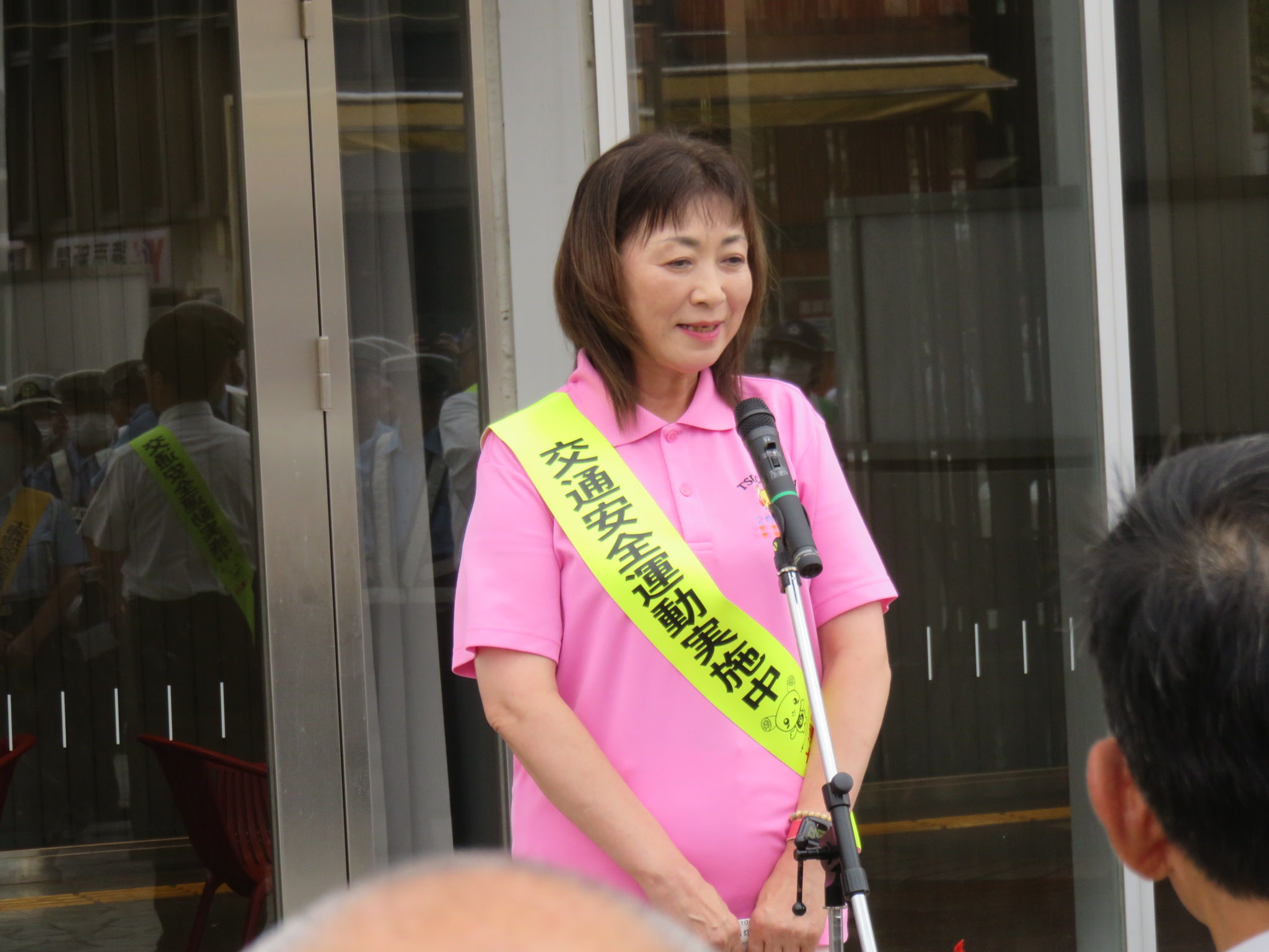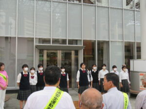 セレモニーでは、安藤真理子土浦市長、永沼義道土浦警察署長の挨拶、土浦三高生の交通安全への誓いが行われ約150人の参加者の中、盛大に行われました。