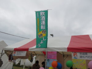 協会ブースでは、のぼりを上げて、茨城県警察と協会がコラボさせて頂いた最新のポスターを貼り、「飲酒運転根絶」アピールさせて頂きました。