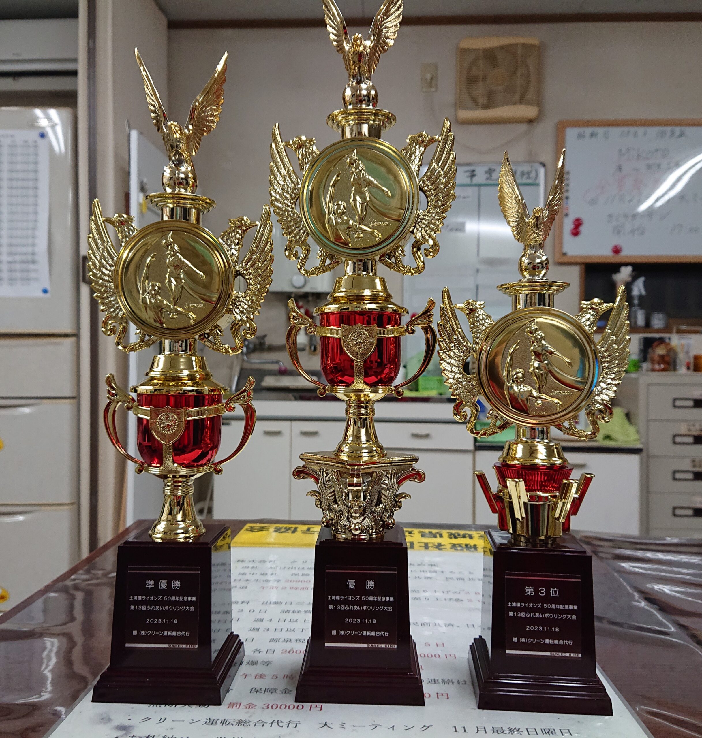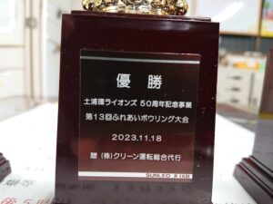 (株)クリーン運転総合代行代表取締役 中山一夫社長((公社)全国運転代行協会監事・茨城県支部長、並びに(一社)茨城県運転代行協会理事長)からも、トロフィー、努力賞の寄贈をさせて頂きました。