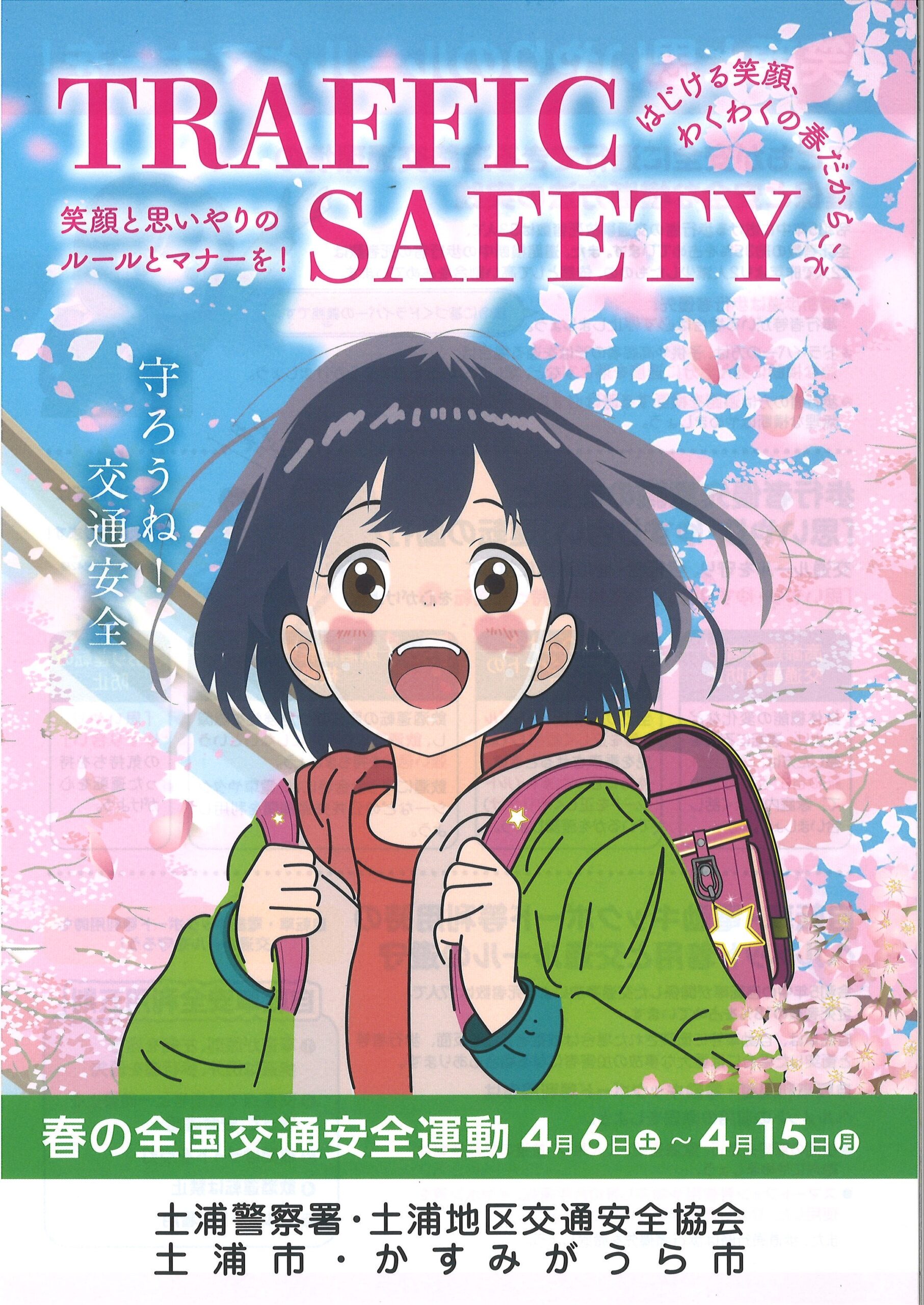 合言葉 「笑顔と思いやりのルールとマナーを!」4月から新学期が始まり、新たな児童、生徒の通学が始まります。