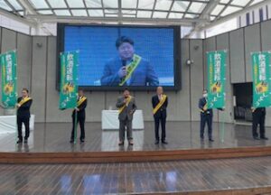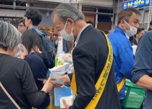 当協会で用意したチラシ・ポケットティッシュ及び宇都宮中央警察から頂いた事故防止等合わせて1000部を配布、来場者の方々に交通事故防止を呼びかけました。また、お時間を頂き板橋会長、阿部支部長・岡副支部長、その他の3名が代表してステージに上がり運転代行の必要性や利用法について説明、そして我々運転代行業は「飲酒運転根絶の受け皿となる業」として「飲酒運転の無い未来を子供たちへ」という思いで、このような活動に取り組んでいることなどを説明しました。