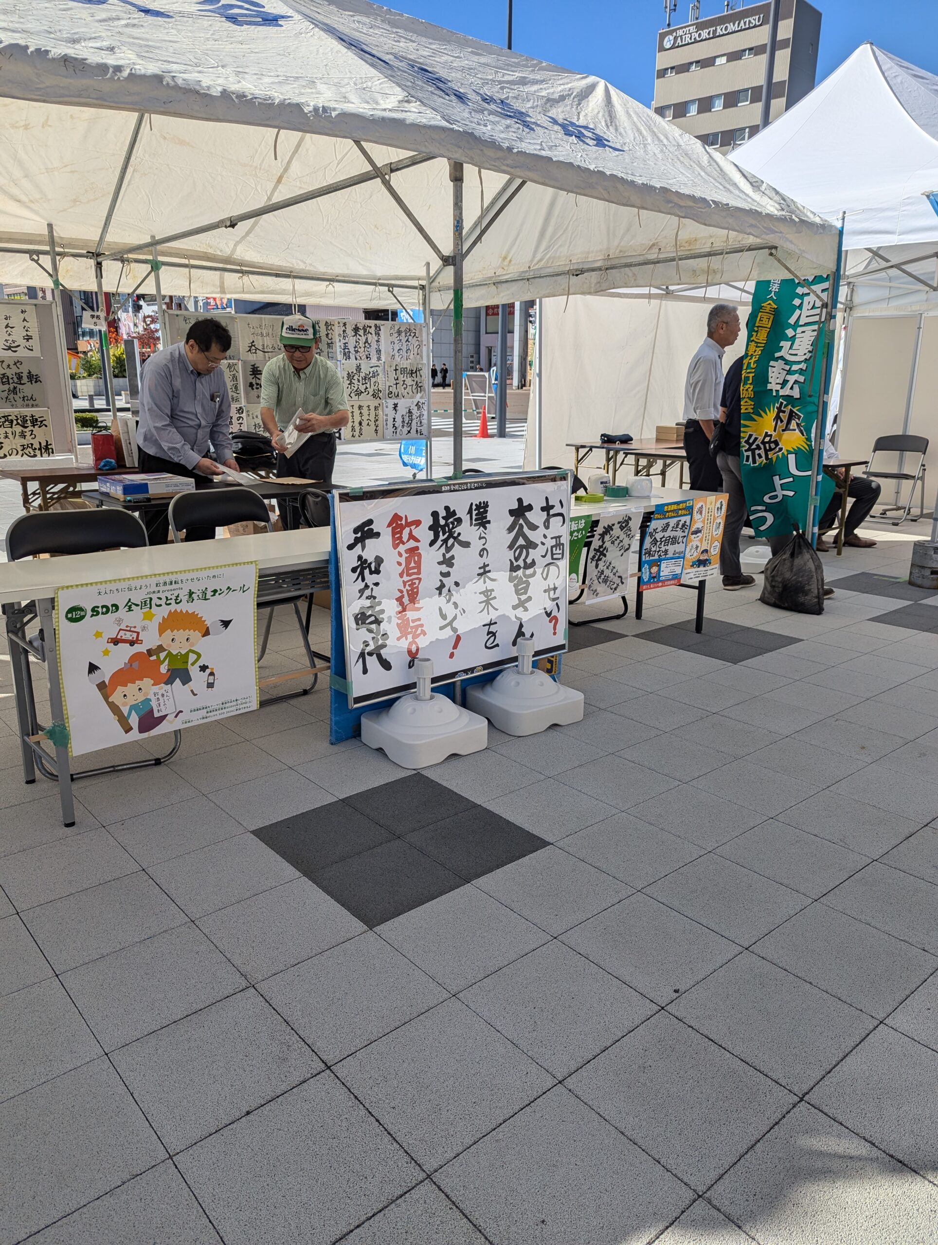 (公社)全国運転代行協会石川県支部(支部長 中川健治)および(一社)石川県運転代行協会は、10月13日(日)に小松駅前で開催された「小松市どんどんまつり」のイベントブースにて飲酒運転根絶活動を行いました。