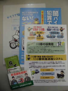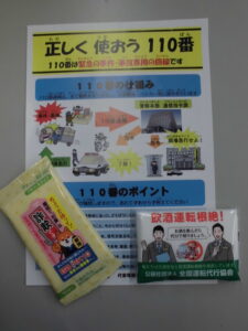 「二十歳の集い」は1月11日(珠洲市)、1月12日(能登町)でで行われ、1月10日が「110番の日」とされていることにちなみ、110番通報の正しい利用を呼び掛けることを主目的としたキャンペーンですが、対象者が新成人ということもあり、飲酒運転の根絶と闇バイトへの注意を呼び掛ける内容も併せて広報した内容で、出席した新成人に対し、協会オリジナルのポケットティッシュ等が配布されました。