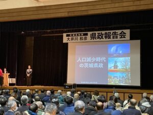 2月18日 水郷公園体育館にて大井川知事による県政報告会に出席