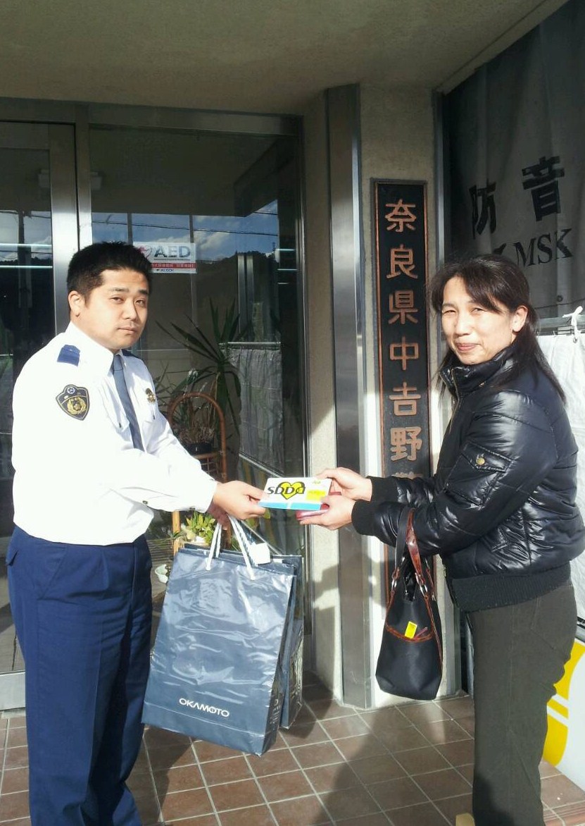 なお、11月28日(木)奈良県支部として中吉野警察署、宇陀警察署をそれぞれ訪問し、協会制作のノベルティ(配布物)をお渡しして、街頭活動用にご活用いただくようお願いしました。