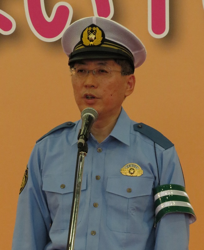 警視庁 廣田耕一交通部長は挨拶の中で、飲酒運転による交通事故発生件数が2000年ピーク時に比べ大幅に減少したものの近年は下げ止まり傾向にある事に触れ、「飲酒運転の危険性、悪質性、またそれによって引き起こされる結果の重大性というものをよく認識し、飲酒運転をしない・させないという飲酒運転根絶の輪を広げていくことが重要です。飲酒運転による交通事故は、飲酒を伴わない交通事故に比べて、死亡事故につながる確率が約9倍と言われています。この事を踏まえ、“飲んだら乗らない”“乗る人には飲ませない” “飲んだ人には車を与えない” この3つの原則を守っていただきたい。またこのような取組を家族、職場、地域の方々に広げてほしい。」と呼びかけました。